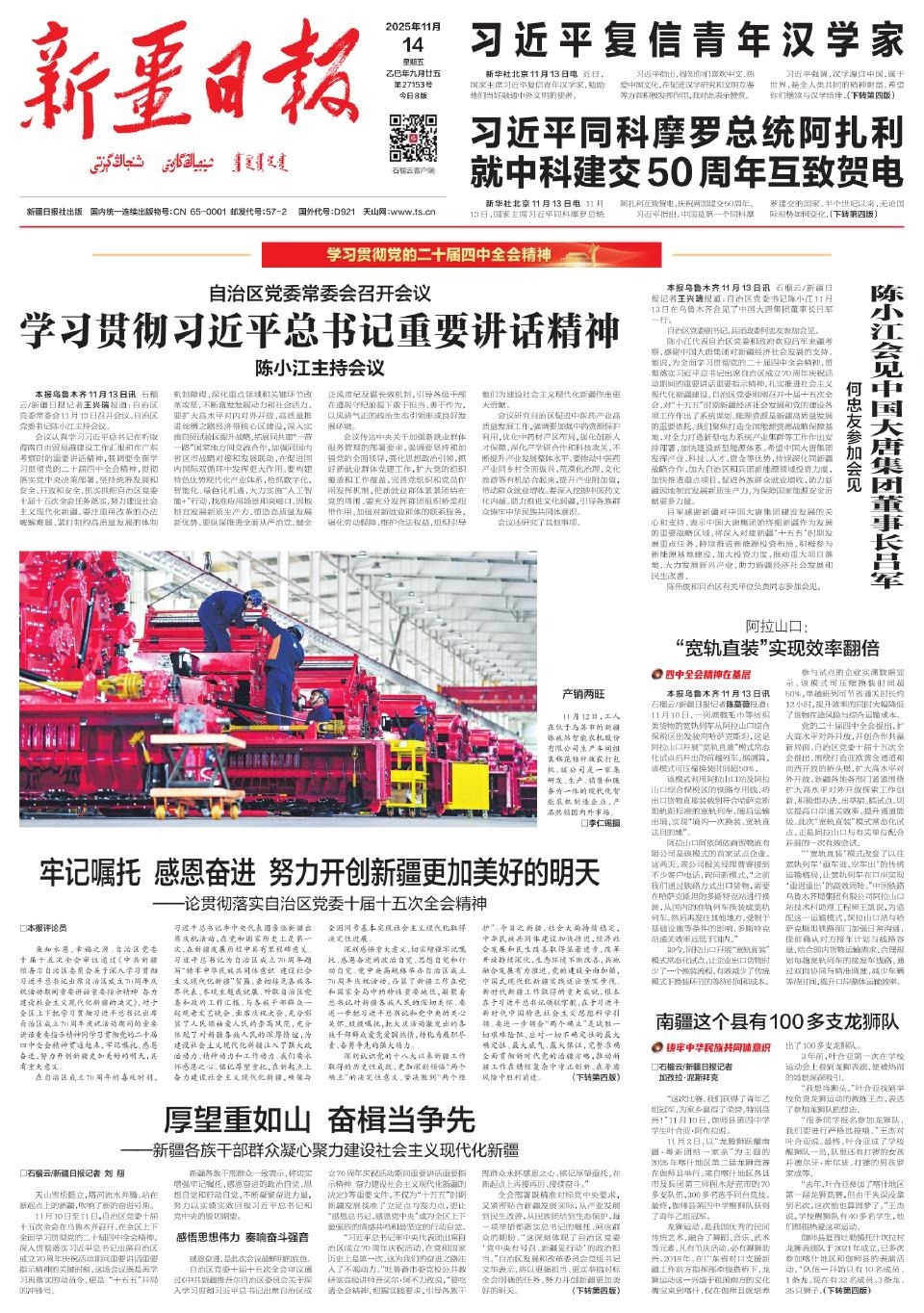 陳小江艾爾肯·吐尼亞孜會見中國建設銀行董事長張金良